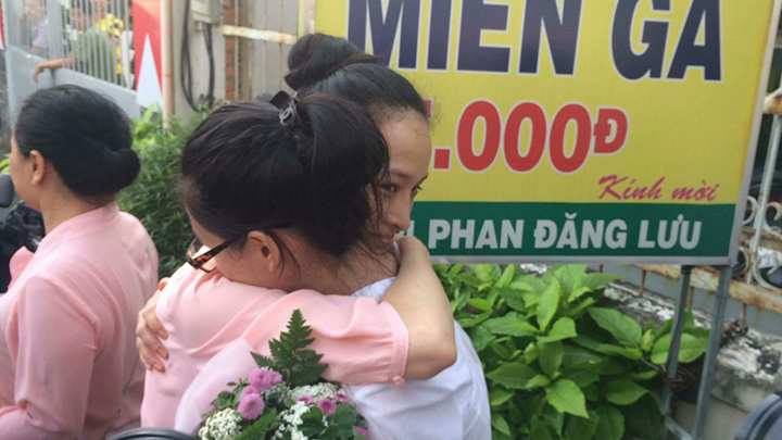 Phương Nga và Thùy Dung ôm nhau khi sau khi làm thủ tục tại ngoại